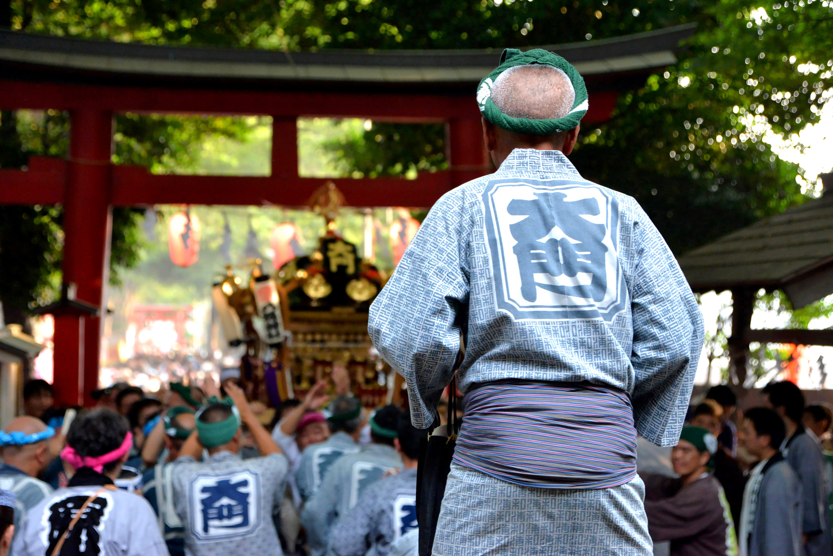 熱気が頂点を極めるのが、境内に神輿が戻っていく宮入りだ。屋台と迫り出す観客で狭まる参道を、時間を掛けて進んでいく様子は荘厳とさえ形容できるもの。そうした場面を見せることが、将来の担ぎ手をつくることにつながり、子どもたちの郷土愛を育むことにもなるのだ。