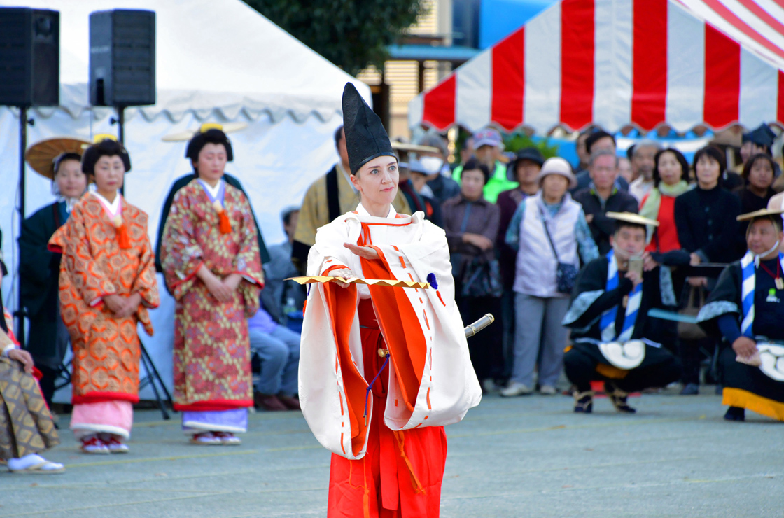 行列には一般の方でも参加できるため、沿道から温かい声が掛けられることもしばしばありました。和やかな雰囲気でありながらも、自分の役割をしっかりと果たそうという心構えも窺えました。回を重ねるごとに、行列に参加したいという声が高まっていくだろうと思わせるほどの華やかな行事でした。