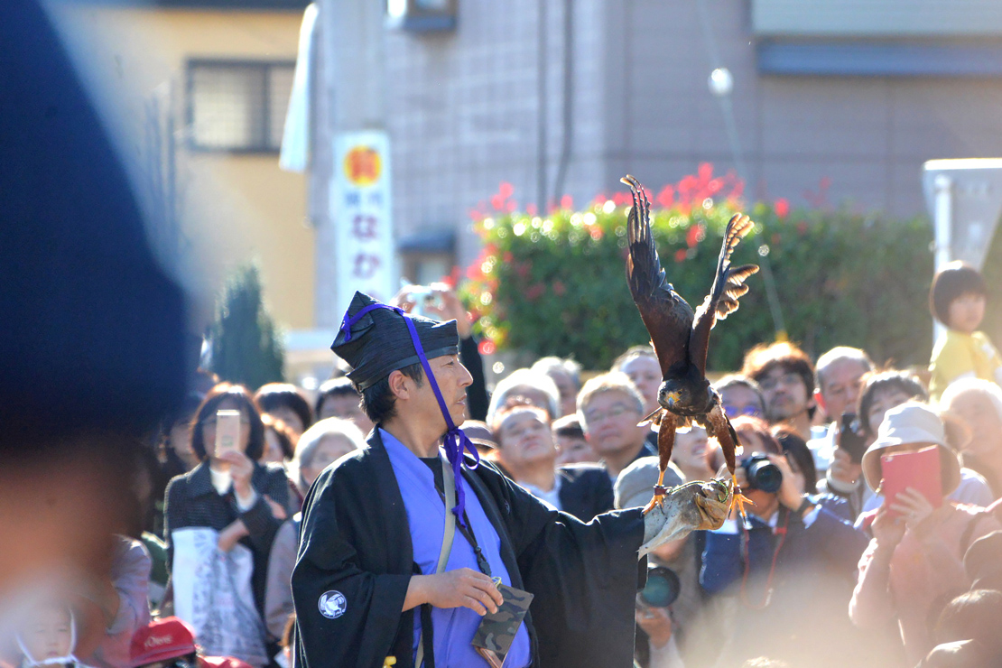 2017(平成29)年11月3日(金・祝)、「第5回 城下町岩槻鷹狩り行列」が開催されました。岩槻は徳川家康による開府後、江戸近郊の城下町として、また日光御成街道の宿場町としても賑わった街。そのような歴史のある岩槻で、往時を偲ばせる行事が「城下町岩槻鷹狩り行列」です。