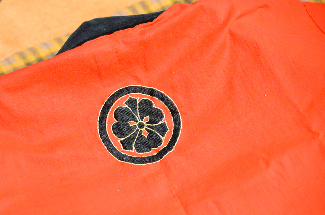 釣上では、子どもたちが土俵まで家紋入りの赤い襦袢を羽 織ります。襦袢を脱ぐといよいよ「土俵入り」。小さい子、 大きい子、役力士の順で行われます。名前の入った化粧まわしも個人でこしらえるのですが、みな違って鮮やかでしょう。私も2人の息子も孫も、みな「土俵入り」を行いました。 息子たちの化粧まわしは神社に奉納しましたが、孫のものは今も大切に保管しているんですよ。