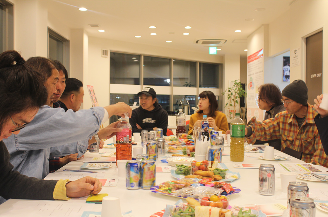今回の交流会では、出店者さんやこれから出店を検討している方、「みそのいち」立ち上げに関わった地元キーマンの方などが集まり、意見交換が行われました。「みそのいち」の今後の話や、出店者さん同士の近況報告など、情報交換と親睦を深めた会となりました。