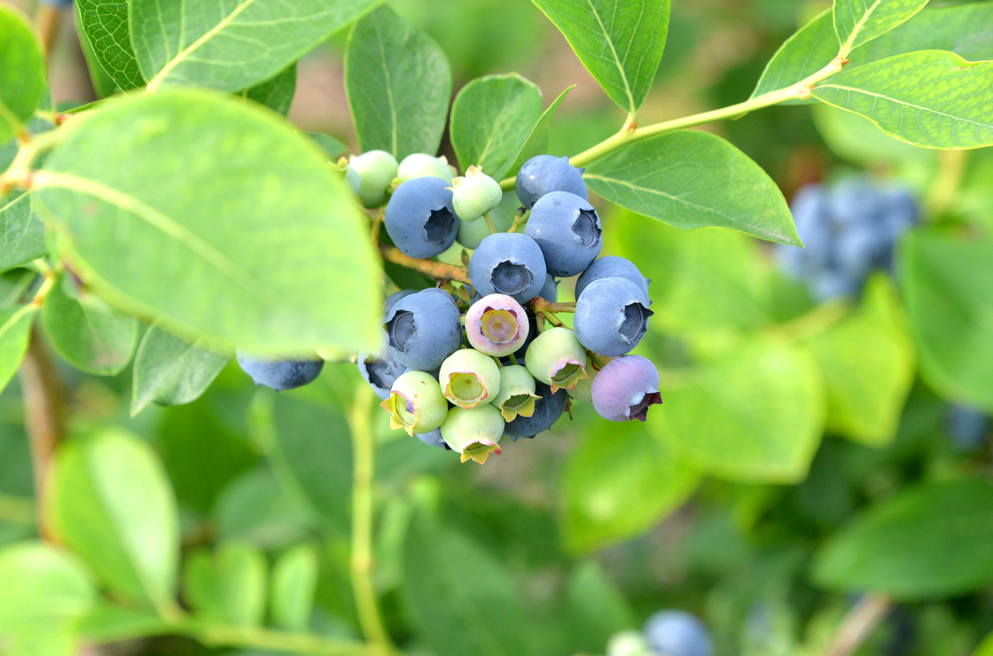 当園のブルーベリーは、まちの青果店で売られているものより白味がかっています。これは、ブルームといい、実を病気から守り、鮮度を保つ働きがあるとされています。このブルームが付いていることが、新鮮なブルーベリーであることの証です。