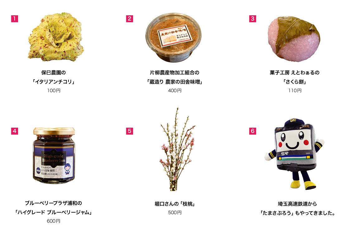 3 岩槻区の、えとわぁるさんからは、季節の和菓子「さくら餅」をご紹介いただきました。その他にもできたての草餅、お団子などが並びます。「お団子は何も混ぜものがありません。その日のうちに味わってください。歯ごたえが全然ちがいますよ。」