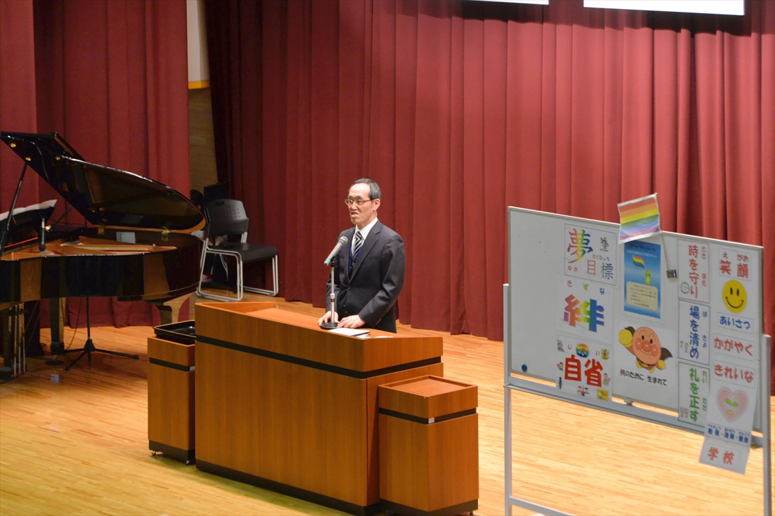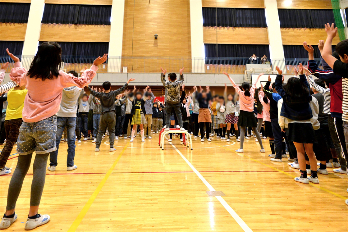 「美園北小学校」に通うことになる児童にとって、この分校式は同校で行われる最後の行事です。学校長のあいさつとともに分校式はスタート。美園小児童と美園北小児童の代表によるあいさつやカレンダーの贈呈のあと、各学校の応援団による「エールの交換」が行われました。体育館には、子どもたちの大きな声と力強い太鼓のリズムが響きわたりました。