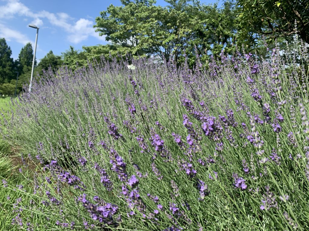 正面入口を入ったところに植えられていますが、このところ紫色の綺麗な花をつけています。もちろん香りもとっても爽やかです。梅雨の中休みの先日、青空に映えるラベンダーを見て、心晴れ晴れとした気持ちになりました。