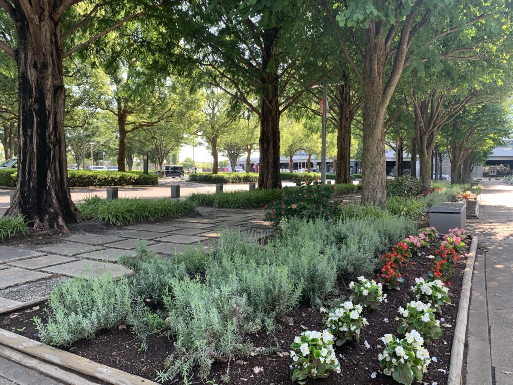 ラベンダーを始め、ハーブは香りを楽しむのがおすすめの植物です。ランニングコース脇には、ローズマリーもあります。ハーブは少し手で触れてみて香りを嗅ぐのも楽しみ方のひとつです。いまは新型コロナウイルス感染の危険もあるので、簡単には手に触れたりできないと思いますが、夏の花、目でも鼻でも五感をフル活用して楽しんで欲しいと思います。