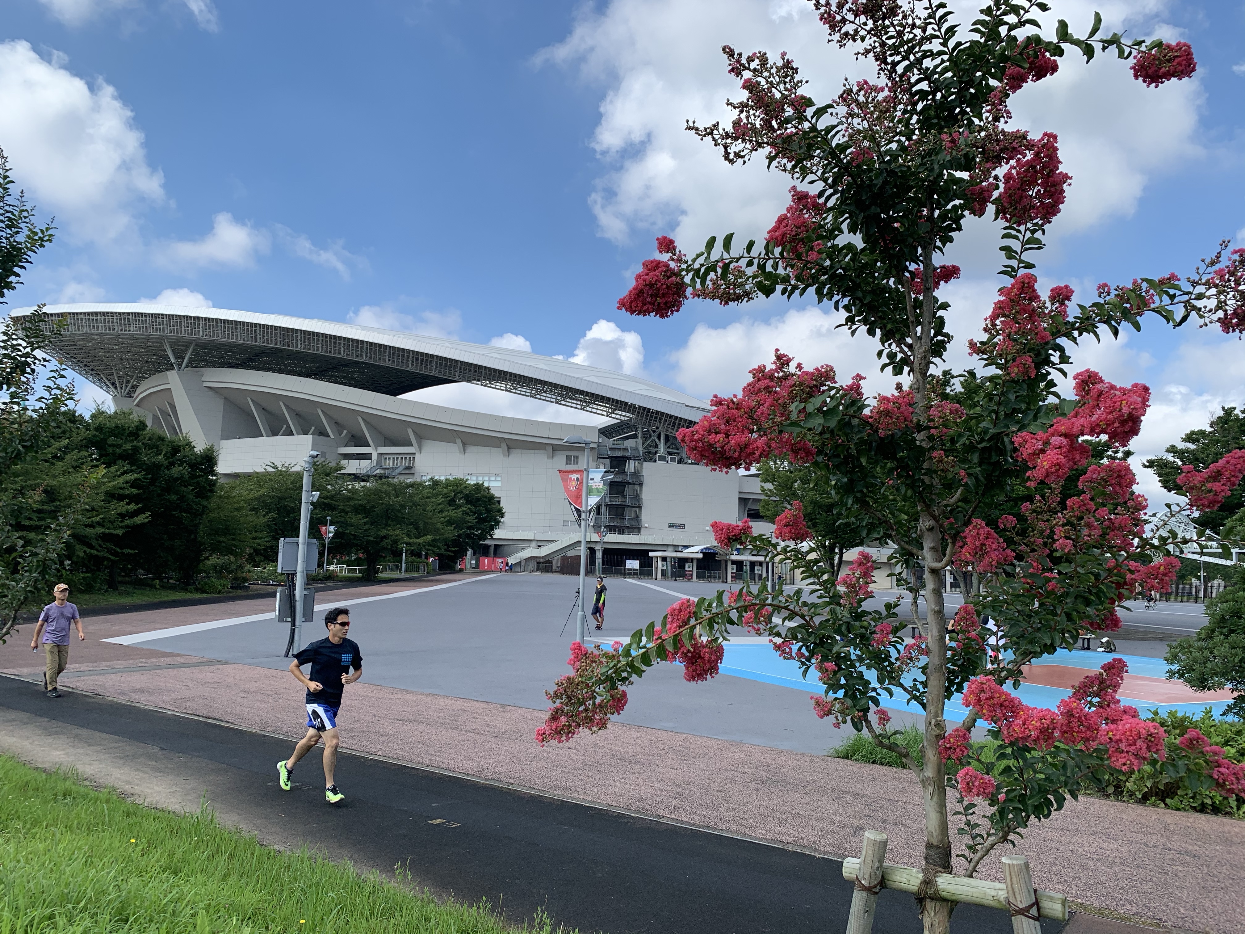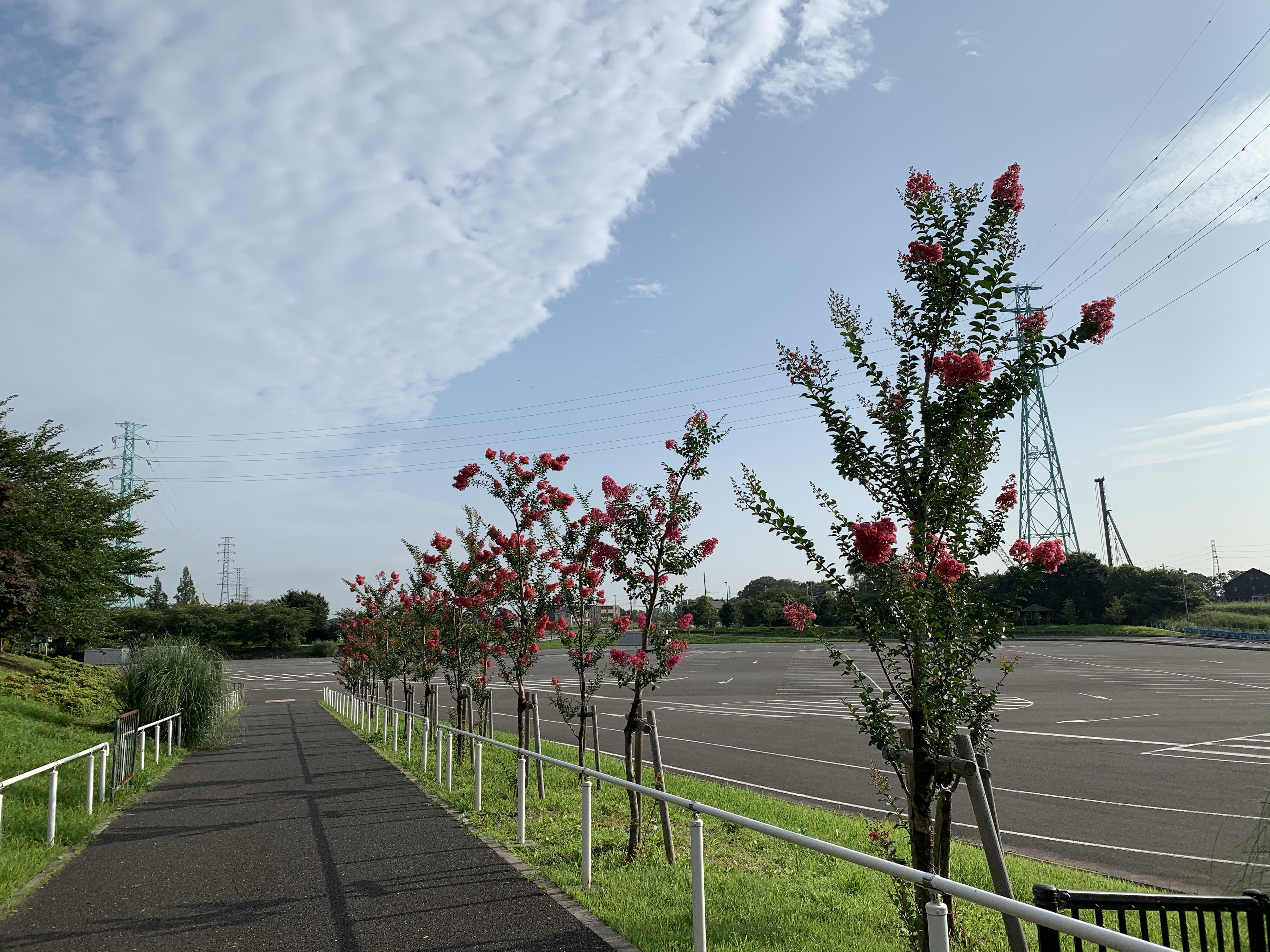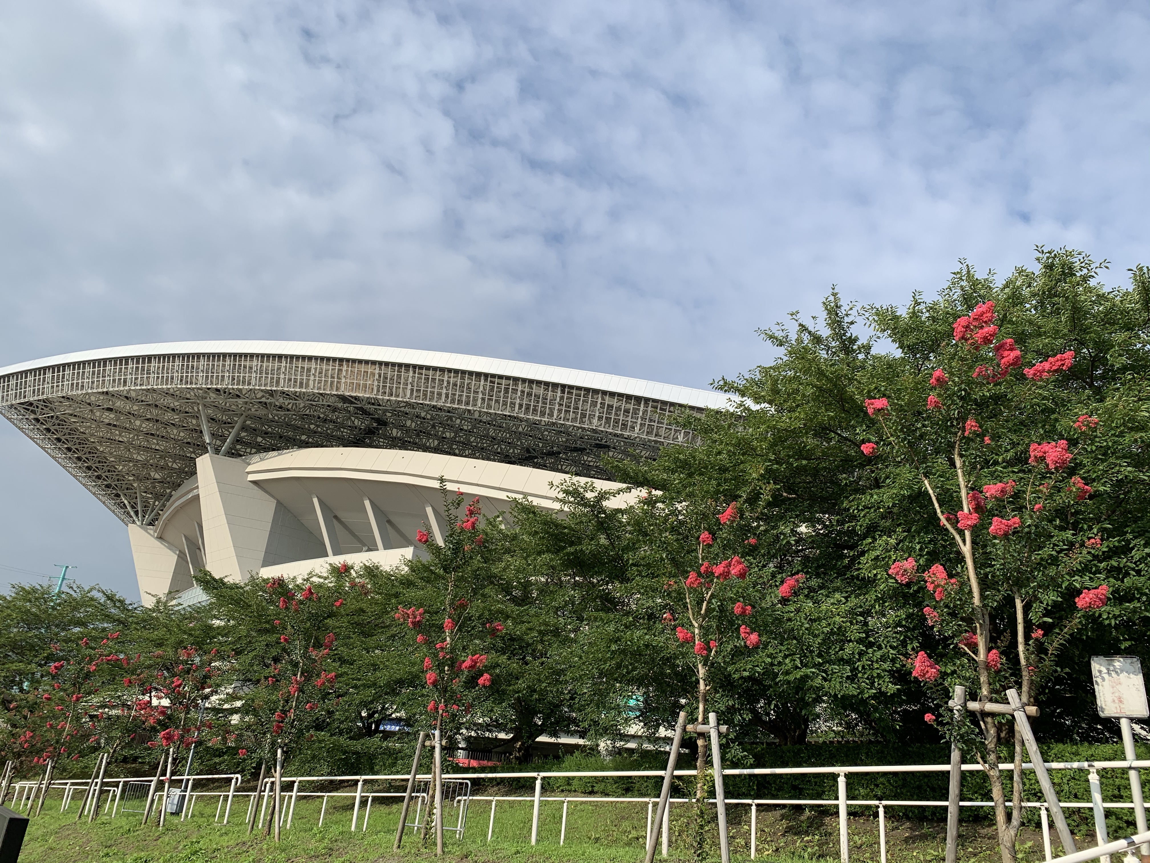 埼スタの赤い花は浦和レッズローズも綺麗ですが、夏は百日紅(サルスベリ)も埼スタに映えて、見ているだけでテンションあがります。 暑くて外に出るのが大変な時期ですが、早朝など狙ってぜひ見に行ってみてください。その名の通り、花の盛りは長く、秋まで楽しめますよ。