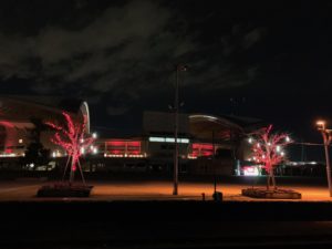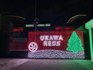 埼スタももちろん赤くライトアップされていました。百日紅の木にも赤いイルミネーションがあって気分上がりますね。