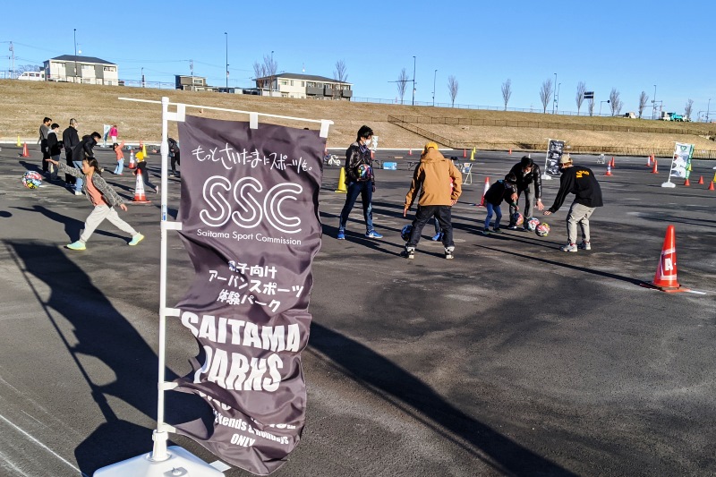 12月20日(日)、整備が進められていた大門上池調節池の一部スペース(アスファルト面)で、一般社団法人さいたまスポーツコミッションが主催する『「SAITAMA PARKSIN 大門上池調節池』のイベントが開催されました。