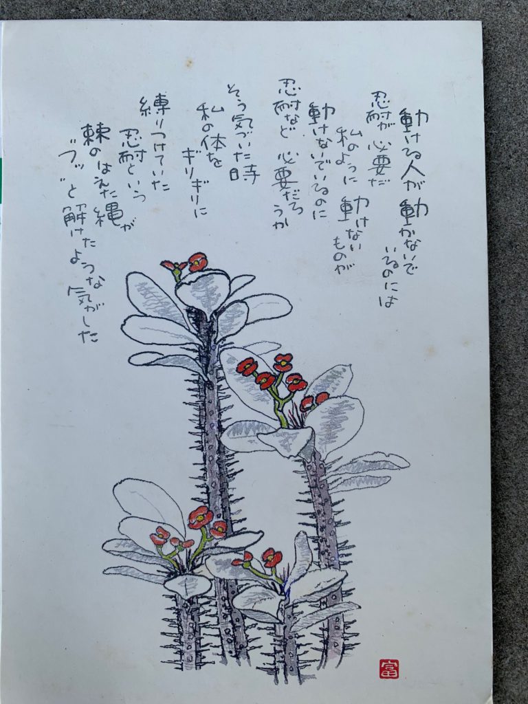 ちなみに、先の絵手紙は星野富弘さんという詩人で画家の方のものなのですが、こちらを私個人のSNSにあげたところ、ラン仲間で看護師の方から