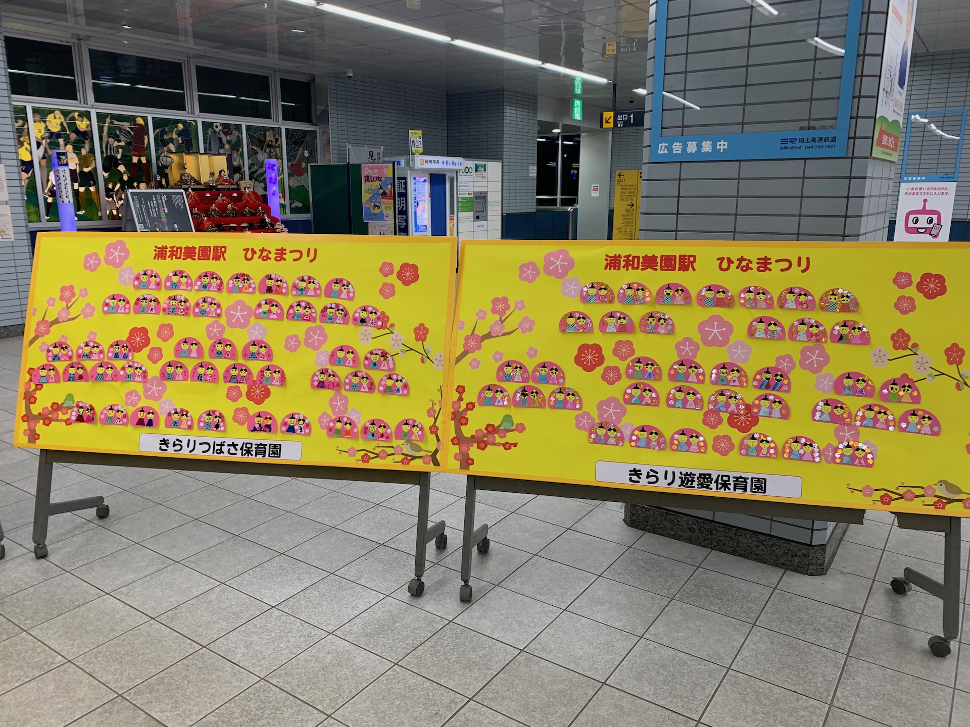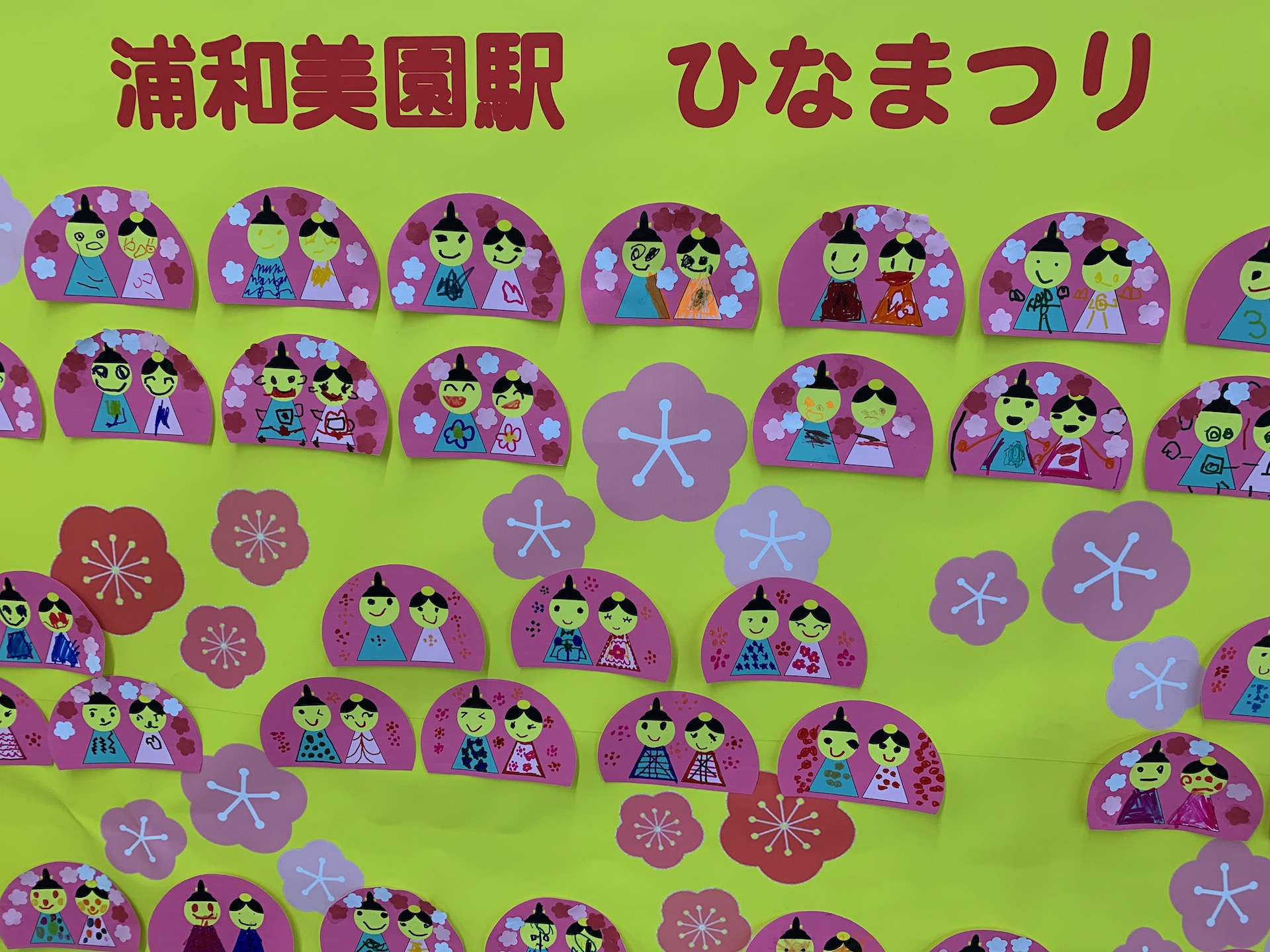 浦和美園駅周辺の保育園からのかわいいお雛様も飾られています。