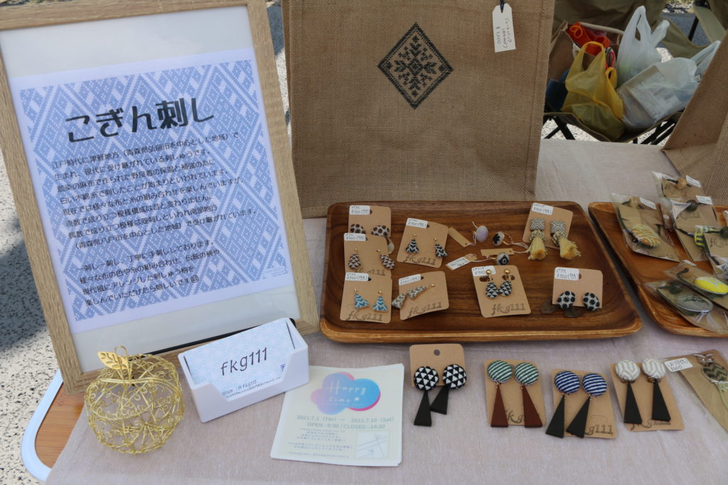 @fkg111さんは、私がちょうどブースを訪れた時はいらっしゃらなかったのでお話は伺えなかったのですが、江戸時代に津軽地方(青森県弘前市を中心とした地方)で生まれた刺繍とのこと。とっても気になるな〜って思っておりましたら、2021年7月1日〜10日までHappy timeに出店されるそうです。こちらはさいたま市見沼区七里にあるそうですが、もしよろしければ少し足を伸ばしてお出かけされてみてはいかがでしょうか? ショップの他に、ワークショップもたくさん開催されているとか。