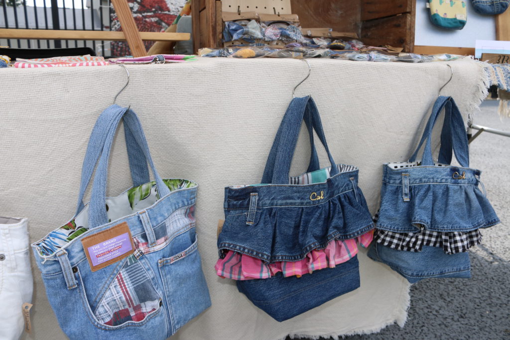 次に覗いたのはデニムの古着を利用したバッグやアクセサリーを作られる「373denimu」さん。