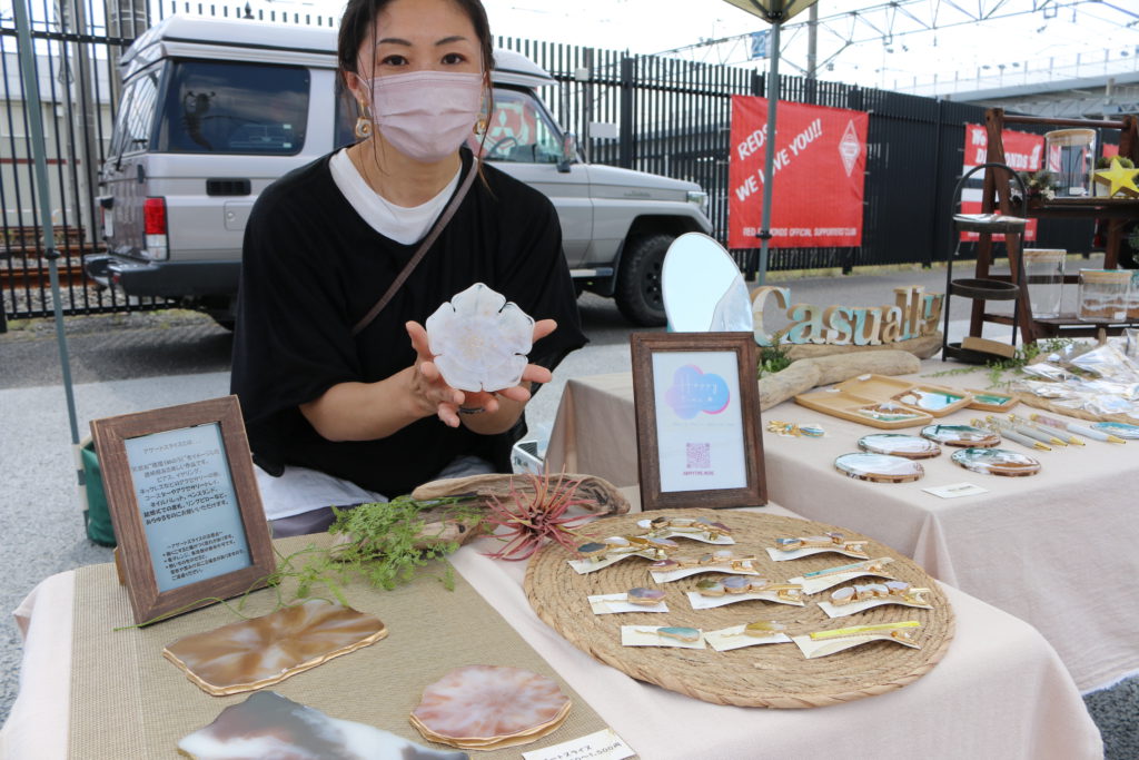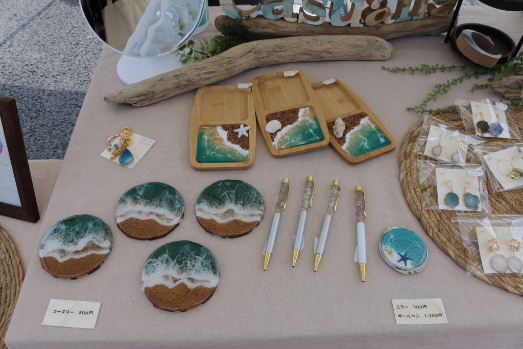 透明感のあるアートがとっても素敵。コースターやボールペン、アクセサリーなどが揃っていました。こちらのcasuallyさんも2021年7月1日〜10日まで七里で開かれるHappy timeに出店されるそうですので、お出かけしてみてはいかがでしょうか?ご自宅でレッスンも開かれているそうです。レッスン情報などはこちらからご覧いただけます。