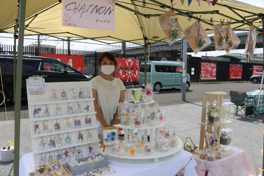 イニシャルキーホルダーの中に、小さなお花や石、フルーツなども入っています。チャームをつけていて可愛かったです(可愛いと興奮しながら写真撮りそびれてごめんなさい)。普段は春日部で美容師を経営されていらっしゃるようで、イベントの時だけ出店されているそうです。