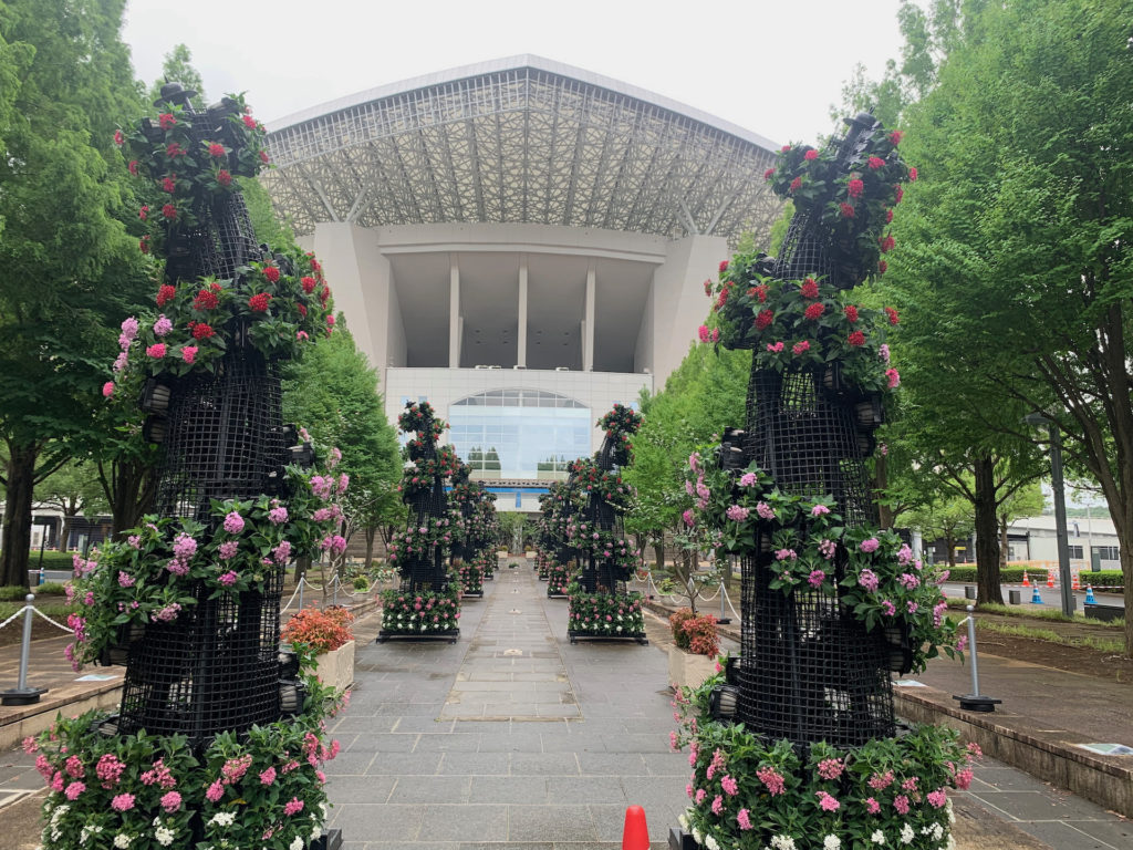 大会期間中はスタジアムにどれだけ近づけるのか分かりませんが、大会マスコットの側の薔薇が綺麗なので、これはぜひチェックして欲しいです。