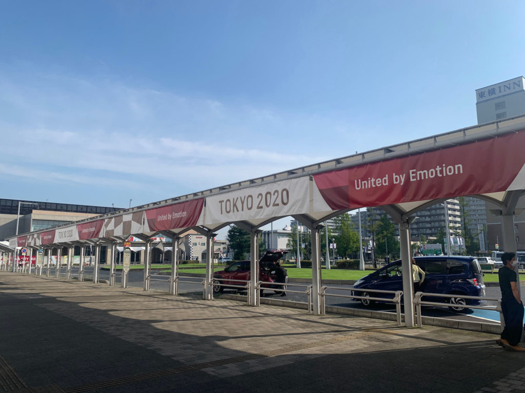 さて、今月はいよいよ東京2020大会が始まります。それにちなみ、駅周辺も装いを変化させています。