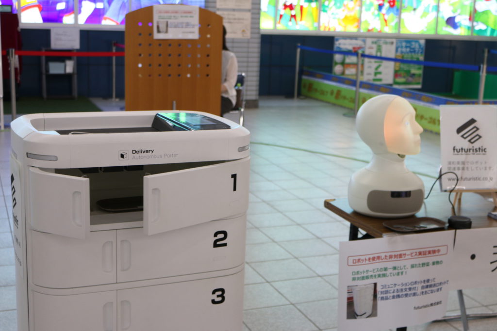 今回は、「非対面販売デモ実証実験」ということで、お金やもののやり取りを人を介さず、全てロボットを使ってやろうという実験でした。
