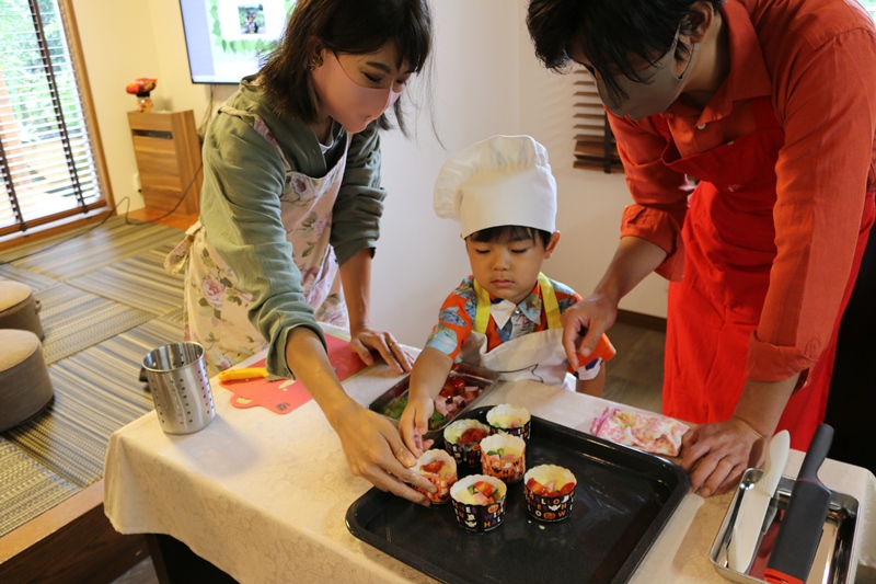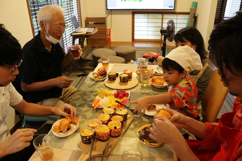料理が大好きな息子さんが中心となり、粉を混ぜたり、野菜を切ったりをみんなで行いました。焼き上がったマフィンを一緒に食べる時間も楽しいものです。