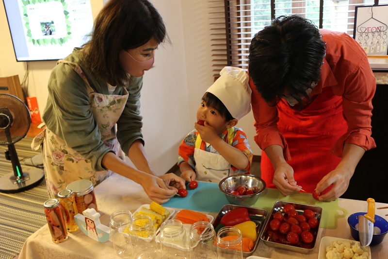 パプリカやニンジンなどをカットして作ったピクルスは透明の容器に入れて持ち帰り。「おばあちゃんのお土産にしようね」と大満足です。