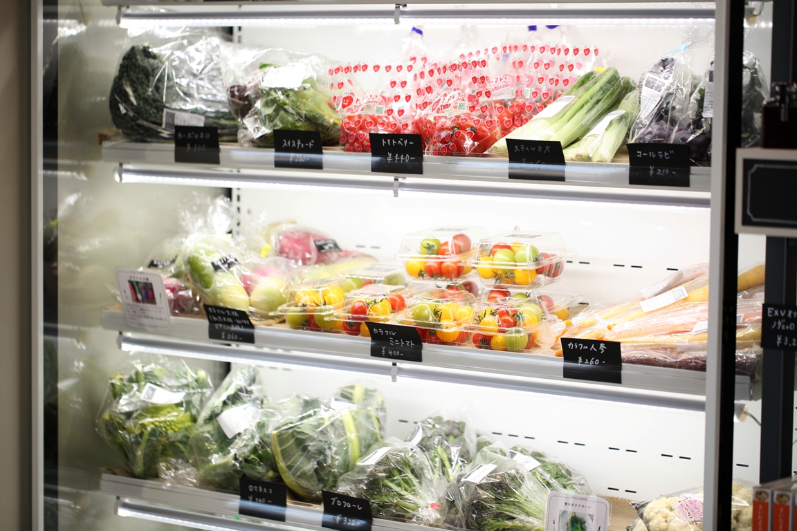 新鮮なヨーロッパ野菜たちが並ぶ、店内の販売コーナー
