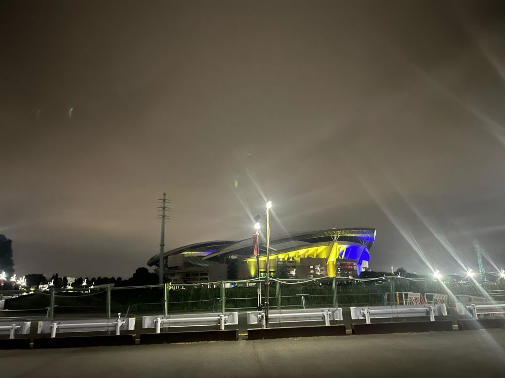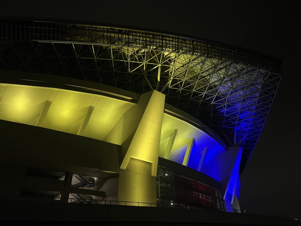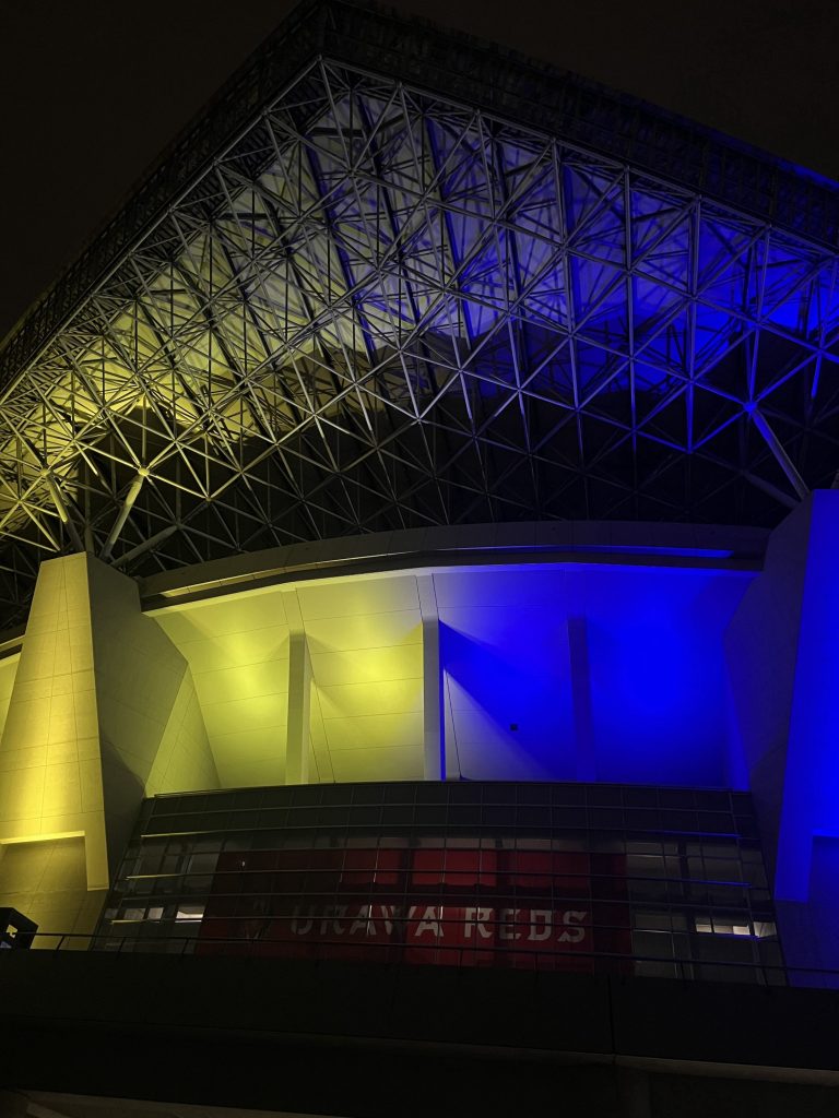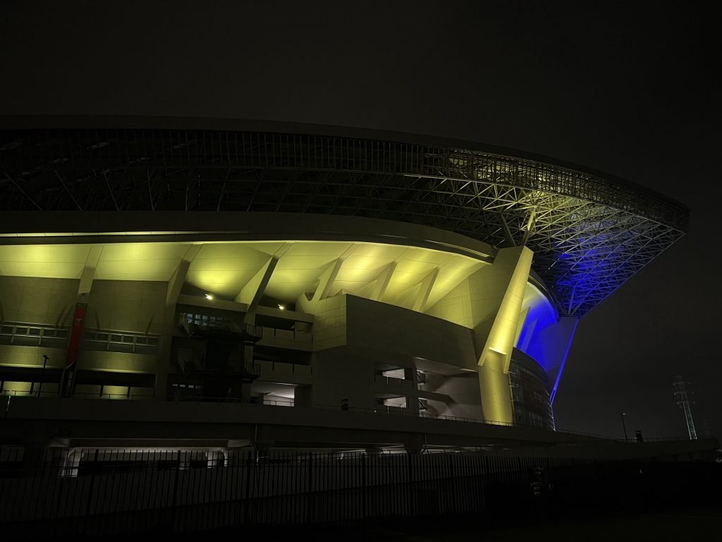 【埼スタライトアップ】平和への祈りを込めたウクライナカラー