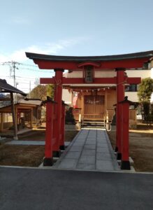 埼玉スタジアム北側の緑区美園1丁目には高畑稲荷社が高畑自治会館の横に新社殿になっていました。小さな祠本体は古いのですが、基礎部分は新しく、以前あったものを多分移築されたものと思われます。