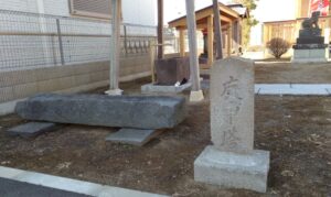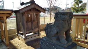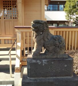 そこから北側に行くと同じ美園3丁目の玄蕃新田自治会館の横に木傘神社が新しい社殿になっていますが、そこに結構朽ちている庚申塔があり年代は不明でした。唐獅子は昭和8年(1933年)の石造物でした。