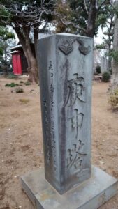浦和美園駅西口を西に5分程行った斜面林の手前に下野田稲荷神社の祠があります。境内には道標を兼ねた庚申塔があり天保5年と刻印されています。北は岩槻、東は越谷、南は鳩ヶ谷とあり何故かすべて二里となっていました。そしてここは足立郡下野田村だったことが記されていました。
