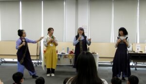 また、子どもたちにアベベの皆さんが持ってきた面白い楽器を持って一緒に演奏する時間もありました。ビニールをこすり合わせて出る音だけでも十分に楽器になっていました。