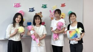 実は「ナーサリールームKIKI」設立前から、5人でTikTokとyoutubeチャネルを開設しており、たびたび集まって活動していました。その流れの中で、ベビーマッサージ講師の資格のある先生をお誘いしたり、私たちはあんな事もこんな事もできるね!などのアイデアをもらったりと、とても盛り上がったのと同時に、みんなを巻き込んでいきました(笑)。