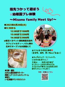 毎日家事に育児にお仕事に!と忙しいママやパパに、お子さんを預けることや、子育てを人に頼ることをもっと身近に感じて欲しいとの想いで、美園地区で活動している「美園シェア・コンシェルジュ・チーム」が企画運営する「Misono Family Meet Up!」イベント。