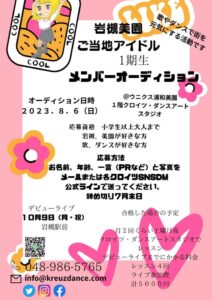 既に2015年より越谷市の女性6人組ご当地アイドル「クロワッサン」のプロデュースも行っているこの「クロイツ・ダンスアートスタジオ」。このたび満を持して岩槻&美園を盛り上げるご当地アイドルのオーディションを開催することに!